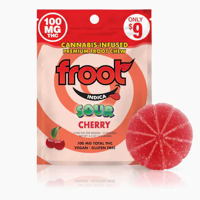 100mg cannabis infused gummies available in cut to dose singles and 10pks by Froot
