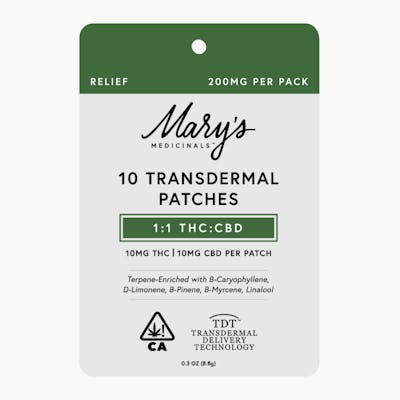 Mary's Medicinals Relief 1:1 10mg THC/CBD 10pk Transdermal Patches Rec
