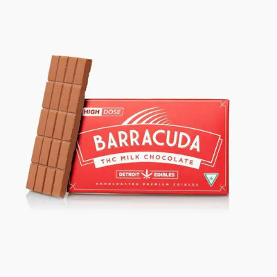 Barracuda Bars are crafted from the highest-quality ingredients. The chocolate is made of 65% Belgian chocolate combined with the purest distillate from our very own Michigan-made Cannalicious Labs for the smoothest consumption experience to date. Milk Chocolate 100mg THC Fully activates in 1-2 hours Ingredients: Sugar, milk, cocoa butter, chocolate liquor, lecithin, vanillin, cannabis extract. Contains milk and soy.