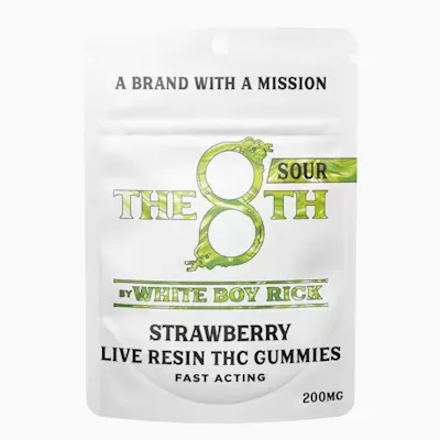 The 8th By White Boy Rick Sour Strawberry Fast-Acting Live Resin Gummies 200mg Rec