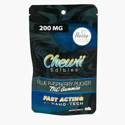 Chewii Fast-Acting Blue Raspberry Pucker Indica Gummies 200mg Rec