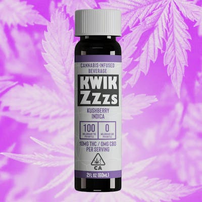 "Specially brewed to ease insomnia and otherwise sleepless nights, Kwis Zzzs contains traditional healing herbs such as lavender, chamomile, and Valerian root. These herbs are combined with our premium kushberry indica extract and a delicious elderberry flavor, making Kwik Zzzs the most satisfying way to achieve a good night’s rest. Flavor- Elderberry Contains: CO2-extracted cannabis oil infused in water with honey, lemon juice, chamomile, ginger root, lavender, valerian root & orange peel extracts, and citric acid. Kushberry is a cross of two legendary West Coast strains: a Blueberry father from Oregon and a Californian OG Kush mother created by DNA Genetics. The resulting strain features a lemony, berry flavor profile laced with notes of fuel. Kushberry averages between 15-20% THC, according to Amsterdam Seed Center. Kushberry won first place in the Outdoor category at Spannabis in 2008."