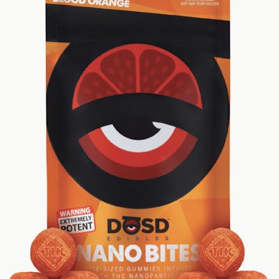 Nano Bites - Blood Orange Flavored Gummies infused with Water-Soluble THC Cannabinoid Nanoparticles Average Onset: 15-25 minutes Pieces per package: 20 x 100mg pieces