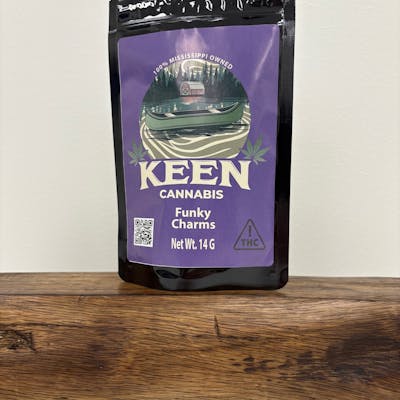 THC - 24.82% CBD - .04% Terps - 2.87% "Funky Charms" is a balanced hybrid cannabis strain created by crossing Grease Monkey with Rainbow Chip. This strain is known for its captivating aroma and flavor profile, blending earthy, skunky notes with a touch of sweetness and spice. Its effects are often described as offering a relaxing body experience coupled with an uplifted mental state, without inducing excessive sedation. Funky Charms is often appreciated for its well-rounded effects, making it suitable for those looking for a blend of relaxation and focus. It may also support stress relief and enhance creativity.