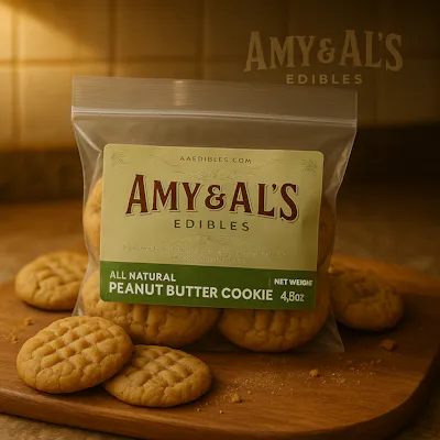 Amy & Al’s 100mg Peanut Butter Cookies deliver a smooth, nutty edible experience in a classic soft-baked treat. Infused with 100mg of THC, this cookie offers a balanced, mellow high ideal for daytime relaxation or winding down without being overwhelmed. Rich peanut butter flavor and nostalgic comfort in every bite.