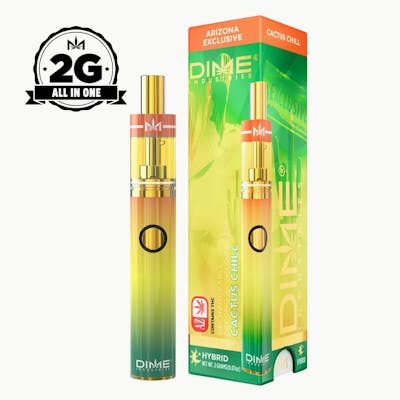 Experience desert vibes with Dime’s Arizona-exclusive Cactus Chill disposable vape. This indica-dominant blend delivers a smooth, laid-back high with subtle earthy and floral notes reminiscent of cactus bloom. Packaged in a sleek, draw-activated pen with 2 g of premium full-spectrum distillate, it offers a clean, mellow pull and a relaxed, body-centered effect perfect for evening chill sessions or winding down after a long day.