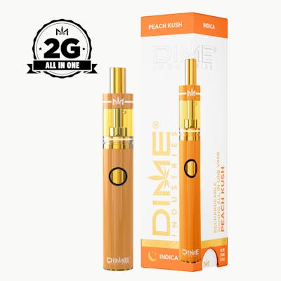 DIME’s 2g Peach Kush disposable blends lush peach flavor with classic kush depth for a smooth and calming vape experience. This Indica-dominant strain delivers long-lasting relaxation and a mellow vibe, perfect for unwinding any time of day.