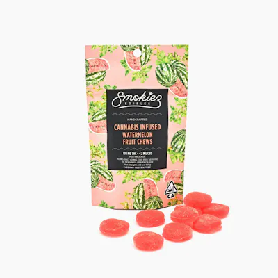 Smokiez brings a clean watermelon sweetness with a light, candy-like finish that keeps each bite simple and refreshing. The effect lands right in the middle—easygoing, relaxed, and steady without leaning too heavy either way.