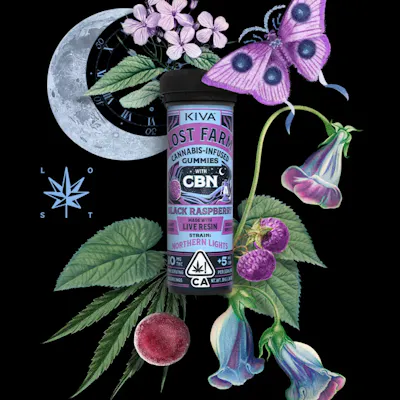 Lost Farm- Black Raspberry Northern Lights CBN 10:5- Gummy- 10 pack- CBN Strain Notes Immensely popular and potent, Northern Lights is a pure indica strain like no other. It brings the earthy fire with a smack of sweet and spicy. We’ve supercharged its serene effects by adding CBN. The result? One deliciously drowsy gummy Flavor Notes This tart, jammy blend of bold berry flavors brings out the sweet nuances of the Northern Lights strain.