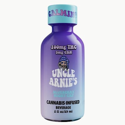 Knock out with the travel sized Uncle Arnie's 100mg THC Blueberry Night Cap Shot. This two ounce shot is infused with 5mg of CBN, a cannabinoid known to help you wind down. Feel relaxed knowing you have a nightcap waiting for you after a long day at work. Just like the classic 8 ounce drinks, these are infused with nano-emulsion technology. You can control your high or get as lit as you want by using the dosed measurement system. Expect your rocket to blast off in 20-40 minutes.