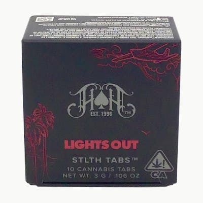 Brand: Heavy Hitters Format: STLTH Tabs Product Line: Lights Out Cannabinoids (per tab): 10mg THC · 5mg CBN Added: 3mg Melatonin (per tab) Onset: ~10 minutes (fast-acting) Experience: Flower-like effects that mirror smoking Dietary Notes: No gluten · No sugar · No nuts Category: EdiblesThe ultimate night’s sleep harnessed in the palm of your hand. Lights Out Sleep STLTH Tabs are loaded, precise, and fast-acting—made for when you want a heavy night’s rest without the calories, gluten, or sugar. Each tab delivers a targeted blend of 10mg THC, 5mg CBN, and 3mg melatonin, designed to help the body unwind and the mind power down.