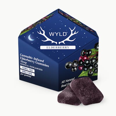 Format: Gummies (10-Pack) Total Cannabinoids: 100mg THC · 50mg CBN per box Per Piece: 10mg THC · 5mg CBN Type: Indica-Enhanced Formula Flavor: Elderberry Main Effects: Sedating · Calming · Restful · Sleep-Inducing Brand: WyldWyld Elderberry Sleep Gummies combine THC and CBN in a 2:1 ratio, infused with indica-like terpenes to promote deep rest and relaxation. This soothing blend may enhance natural sleep cycles, helping you drift off peacefully and stay asleep longer. Bursting with rich elderberry flavor, each gummy delivers consistent effects and clean ingredients for a reliable nighttime ritual — it’s like watching sheep count you.