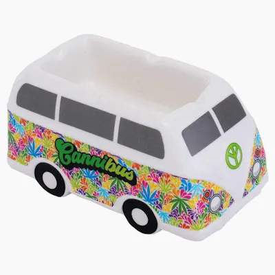 Get ready to roll with the Fujima Hippie Bus Ceramic Ashtray! This far-out accessory brings a psychedelic vibe to your smoking scene, featuring a colorful hippie bus design on a durable ceramic base. With its spacious 5.5" x 3" dimensions, it's the perfect ride for your pre-rolls and other smoking essentials.