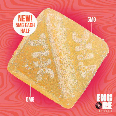 CBD: 7.4mg | CBG: 2.4mg | THC9: 97.2mg | THCV: 0.8mg | Flower Equivalent: 0.39g -- Lineage: Hybrid Blend 1 gummy is 2 servings, split each piece in half for a dose of 4.86mg THC The chewy chart-toppers. Sugary sativas, sweet indicas, sour CBD ratios, and full-spectrum RSO infusions headline the Encore lineup. Juicy and delicious, classic fruit flavors and the perfect pectin-based consistency are always center-stage. -- Expiration Date: 2027-03-13