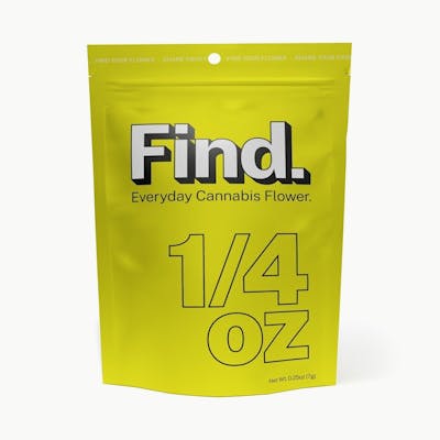 AlphaPinene: 0.7% | BetaCaryophyllene: 0.21% | BetaMyrcene: 0.77% | BetaPinene: 0.33% | Bisabolol: 0.03% | CBGA: 0.52% | Guaiol: 0.06% | Humulene: 0.08% | Limonene: 0.46% | Linalool: 0.07% | Nerolidol: 0.04% | Ocimene: 0.03% | Terpinolene: 0.06% | THC9: 1.02% | THCA: 28.11% | TotalTerpenes: 2.94% | Flower Equivalent: 7g -- Lineage: Frosted Motorbreath RV04 x Modified Muffins #10 Introducing Find. Get the quality and quantity you’re looking for so you can enjoy some great green—for less green! With Find, get a perfect 7g at a price that’ll make you smile. -- Expiration Date: 2026-09-30