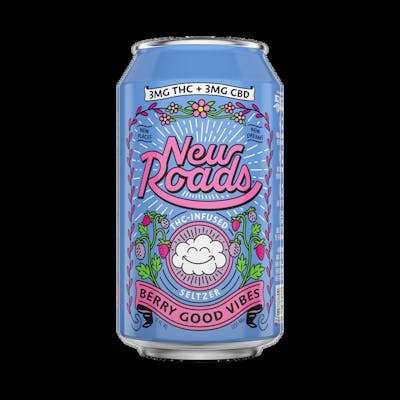 New Roads Berry Good Vibes is a THC-infused seltzer bursting with fresh berry flavor. Blueberry, cranberry, and elderberry come together in a refreshing seltzer with a clean, crisp finish. Light, bubbly, and infused with 3mg THC and 3mg of CBD. INGREDIENTS: Water, Apple Juice, Grape Juice, Elderberry Juice, Blueberry Juice, Cranberry Juice, Erythritol, Monk Fruit, Hemp-Derived THC, CBD, Natural Flavors, Citric Acid *Does NOT deduct from adult use/medical allotment limit This is: 1) A manufacturer hemp product; (2) Subject to different testing standards than cannabis or marijuana; and (3) Not marijuana, cannabis or a cannabis product. $1 THC Drink Fee required by the State of Connecticut will be added on in-store at checkout for each drink purchased
