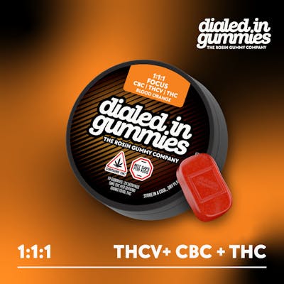 Dialed In - Blood Orange 1:1:1 THC:THCv:CBC (Focus) Rosin Gummies (100mg 20pk)