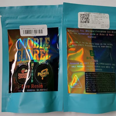 Sativa: Strawberry Cough Indica: Papaya THC: 59.92% THCA: 28.11% Terpenes: 8.78% Limonene, Beta-Caryophyllene, Beta-Myrcene CBD: 7.59% Total Cannabinoids: 82.64%