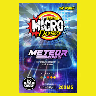 METEOR MINI'S Microdose Cannabis-Infused Chocolate Bites Meteor Minis are small-format infused chocolate bites designed for smooth texture and clean melt. Their size allows for gradual, controlled consumption. Texture: Smooth chocolate melt Flavor profile: Classic milk chocolate Best for: Consumers who prefer traditional chocolate edibles Why it works: Familiar format with measured dosing flexibility