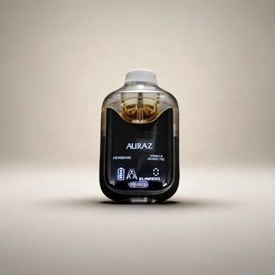 The Auraz Nimbus is a 2g dual-chamber Liquid Diamond disposable built for smooth, consistent performance and reliable hits. This pairing brings together Headband and Vanilla Berry Pie, combining potent, relaxing indica-leaning effects with dessert-like sweetness for a soothing, flavorful vape experience. Headband is a slightly indica-dominant hybrid delivering a signature spacey head high that gradually melts into full-body relaxation. Its flavor is smooth and creamy, layered with notes of lemon zest and sharp diesel, while the aroma blends bright citrus with pungent fuel tones. The effects create calming waves that ease tension, stress, and physical discomfort, making it ideal for slower days or winding down, and for pain relief and anxiety reduction. Vanilla Berry Pie is an indica-dominant hybrid with a rich, dessert-like flavor profile of sweet vanilla berries accented by subtle cake and cookie notes. The aroma mirrors the sweet, inviting flavor, offering a comforting scent. Its effects start with soothing body relaxation and flow into a gentle, hazy cerebral lift, making it perfect for evening use, stress relief, and promoting restful sleep. Together, Headband and Vanilla Berry Pie create a dual-strain vape that moves from euphoric, spacey head effects to smooth, indulgent body relaxation, delivering a comforting and flavorful experience from start to finish.