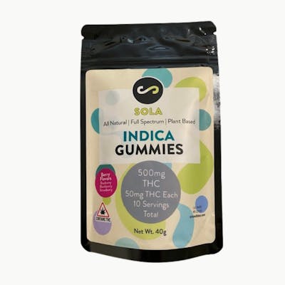 SOLA Edibles | 500mg THC Mixed Berry Flavor Gummies | Indica
