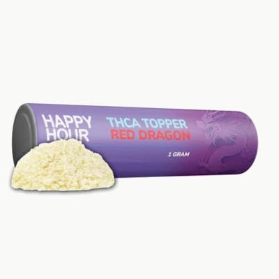 Happy Hour's THCA Topper (Red Dragon) is produced using a patented process that extracts and preserves the THCA crystals and terpenes from the flower. This results in a potent and aromatic topper that can be added to any joint or bowl for an extra kick of THC and flavour.