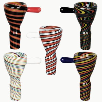 Accessories for Water Pipes These colourful Pulsar wig wag herb slides are made with borosilicate glass and available in a 14mm male joint. Features a built-in handle and worked joint connection. Pulsar wig wag bowls are sold in assorted colours that may vary from images. Herb Bowl Features: Size: 14mm Male herb slide Borosilicate glass Wig wag design with handle Assorted Colours (Colours Vary)