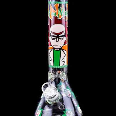 Interstellar Design: Leaf with iconic Rick and Morty expressions. Glow-in-the-Dark: Elevate nighttime sessions with a cosmic glow. Classic Beaker Bong: Traditional stability meets modern theme. Majestic Glass: Durable, captivating aesthetic. Collector's Dream: Perfect for Rick and Morty enthusiasts. Dive into another dimension with our 14" Halloween Rick and Morty Beaker Bong that glows in the dark! Proudly showcasing the universe's quirkiest duo, this bong is a must-have for fans and enthusiasts alike. Each puff from this masterpiece is an interstellar journey through its unique honeycomb design, surrounded by iconic faces of Rick and Morty donning various expressions. A classic beaker bong design ensures stability while you enjoy your sessions, yet there's nothing traditional about its glow. When the lights go down, this bong illuminates with an otherworldly glow, making your session even more cosmic. Made with a majestic glass body, its durability is only surpassed by its cool, captivating aesthetic. Whether you're a fan of leaf bongs, beaker bongs, or just the zany escapades of Rick and Morty, this piece is the epitome of functional fandom. Grab your very own glow in the dark adventure and elevate your collection to another galaxy. Discover why our Rick and Morty bong is the talk of every dimension!