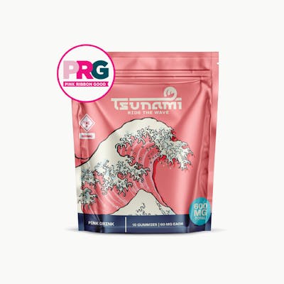 Inspired by your favorite iced café treat, Pink Drink delivers a smooth swirl of sweet strawberry and creamy vanilla in this 600MG 10-pack of high potency gummies. It’s rich, fruit-forward, and unapologetically indulgent. This limited-edition gummy also gives back. A portion of proceeds supports Pink Ribbon Good, a nonprofit dedicated to helping those fighting cancer today with free meals, rides to treatment, housecleaning, and peer support. Enjoy bold flavor while making an impact. Formulated for high-dose consumers, Pink Drink is precision dosed and made for those who like their flavor bold and their elevation bigger. Why You’ll Love It: 60MG THC per gummy – For seasoned users who ride heavy Sweet Strawberry & Vanilla Flavor – Like sipping your favorite pink latte High Potency Formula – Bold and balanced Precision Dosed – Consistent, reliable effects every time Doing Good While Tasting Great – Every purchase supports Pink Ribbon Good 60 MG THC per piece | 10 pieces per bag Pectin-based - Vegan & Gluten-Free Tsunami is crafted from premium ingredients, a proprietary blend of sugars, naturally derived flavors and utilizes a slow-cure process to ensure a market-leading profile in consistency, taste and texture. The oversized pieces provide as much flavor as possible in a high-dose gummy, as well as give enough substance to be able to be cut down into smaller doses. Edibles typically take longer to show effects than other methods of THC intake. Please dose responsibly.