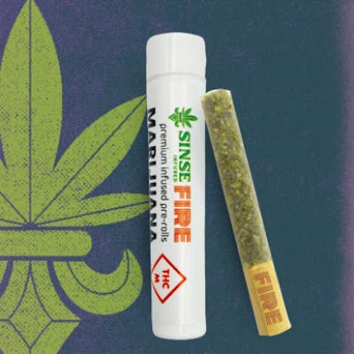 Each package contains a single 1g infused pre-roll by Sinse. Sinse FIRE is the next generation of wax infused pre-rolls. Combining our premium flower with highly potent cured wax makes a flavorful, terpene rich, intensely elevated smoking experience that is smooth, tasty, and heavy hitting. SINSE Cannabis mechanized rolling method ensures a consistent burn, while the cured wax infusion slows it down, providing maximum value. Prepare to get rocked because we know it's FIRE.