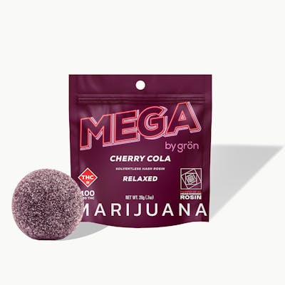 Pop the top on classic soda fountain vibes! Cherry Cola MEGA brings that rich, fizzy flavor with a deep cherry finish and notes of nostalgia. Smooth, sweet, and perfect for winding down—this one’s got main character energy,in a chill way. Made With Real Fruit • Soy-Free • Gluten-Free • Solventless Hash Rosin 1/10 MEGA PEARL PER SERVING | 10 SERVINGS PER PACKAGE