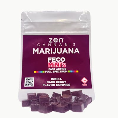 5mg PER GUMMY - 25 Pack Enjoy a new way to find your zen with our new Cannabis Full Extract Cannabis Oil (FECO) Mini Gummies in Dark Berry flavor. Infused with the finest FECO available, these gummies offer a full and robust cannabinoid profile and a delicious berry taste. This concentrated, whole-plant infused treat is potent enough for both medicinal and recreational use and all of our products are triple tested for potency, quality and consistency. Zen Cannabis’ new FECO Mini Gummies provide a delicious, terpene-rich, powerful, and convenient way to find your zen.