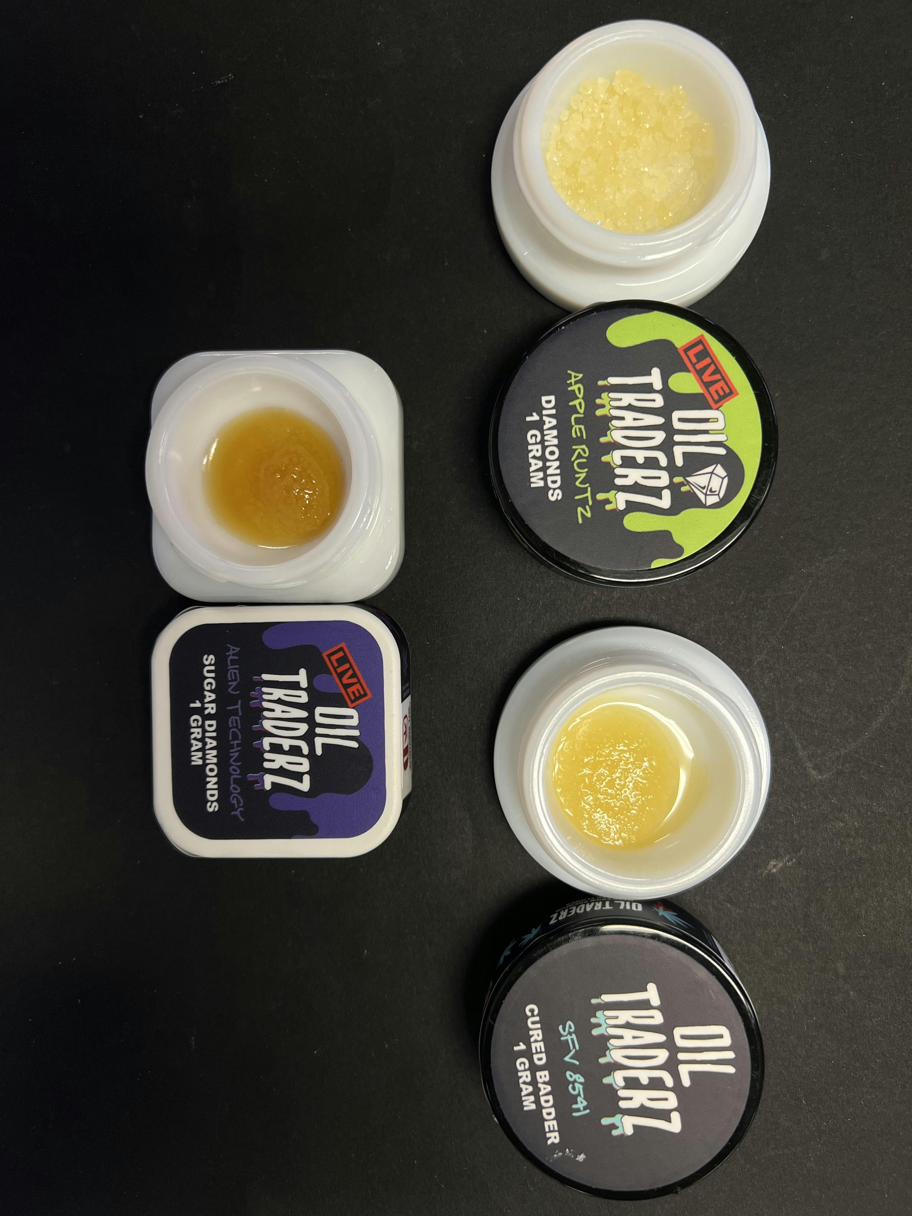 Oil Traderz makes a wide variety of consistencies, our most popular being our raw cured badder! Our badder includes all of the wonderful terpenes and cannabinoids that the plant has to offer. Dive in to one of our popular 1 Gram jars today!
