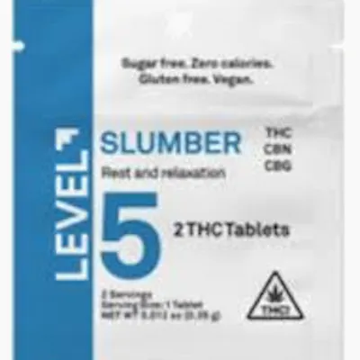 Struggling to find a natural and effective way to unwind and get a good night’s sleep? Then forget sugary gummies and late-night snacks and try LEVEL 5 Slumber. We’ve combined the power of 5 mg of delta-9 THC, 5 mg of CBN, and 3 mg CBG in a carefully balanced formula designed to gently lull you into a state of relaxation and promote restful sleep. These highly effective, long-lasting tablets are sugar-free, gluten- free, vegan, and contain zero calories. They’re scored for easy splitting so you can customize your dose to find the perfect level of tranquility. Simply swallow with liquid.