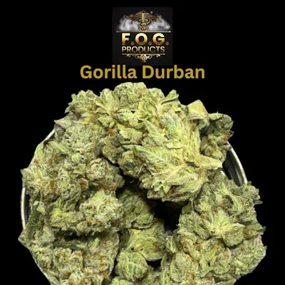 Gorilla Durban is a sativa-leaning hybrid that blends the fuel-heavy punch of Gorilla genetics with the bright, classic profile of Durban. It typically has a sharp, earthy-diesel aroma with hints of pine and citrus spice. The effects are uplifting and energizing, starting with a clear-headed cerebral boost and focus, followed by a light body relaxation—making it a good daytime option for productivity, mood, and creativity without heavy sedation.