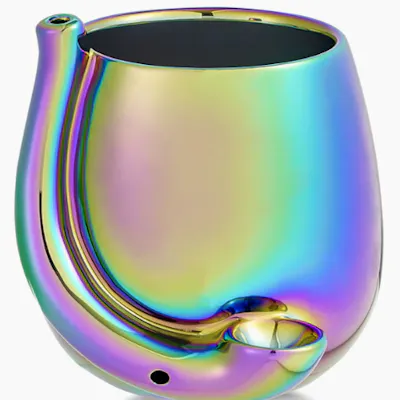 Sip your vintage with a splash of colour using the Iridescent Stemless Wine Glass Hand Pipe. This ceramic hand pipe includes a built-in bowl and features a stunning iridescent finish to keep your smoke sesh sparkling. Product Features: - Made of ceramic - Size 4" L x 4" W x 4.5" H