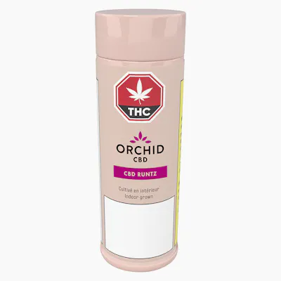 Orchid's CBD Runtz pre-rolls are produced with nothing but hang dried, slow cured, whole buds which have been consistently ground, and wrapped in premium RAW organic hemp cones. Enjoy five 0.5g pre-rolls packaged in eco-friendly tin tubes. CBD Runtz is a sativa hybrid strain. Its lush green, high-quality buds are generously covered in light orange pistils and resinous, surprisingly sticky trichomes. CBD Runtz contains a deliciously sweet, floral aroma and wonderfully diverse terpene profile that is full of myrcene, limonene, and much more.