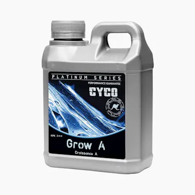 Cyco Grow A is the first of two parts to make up the base nutrient system for the vegetative growth stage of plant growth. Cyco Platinum Series Grow A is a primary source of pharmaceutical grade nitrates which are vital for leaf growth, the formation of chlorophyll, and nucleic acids which form the very DNA of the plant cells derived from pharmaceutical grade ingredients. Cyco Platinum Series Grow A provides certifiably the cleanest form of this crucial component to plant growth. Grow A is also the primary source of calcium in the vegetative stages. Calcium in Cyco Grow A is derived from pharmaceutical grade calcium nitrate for a source of readily available calcium to form thicker cell walls enabling strong stem, leaf, and stalk formation. Part one of two of the Cyco Grow base nutrient system Complete in micro-nutrients needed for plant growth Technology for superior mineral uptake and stability Industry leading 1-micron filtration process Derived from 100% pharmaceutical grade ingredients