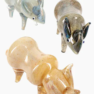 Is it a figurine or a pipe? How bout Both! This playful animal pipe stands out in a crowd! The silver fumed finish develops deeper hues as it’s used. At ~6.5" with a sturdy, hand-friendly profile, it’s a durable novelty that's fun and different.