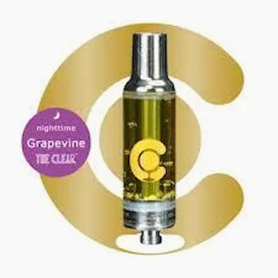 The CLEAR Original Cartridge | GrapevineNighttime – Juicy, Sweet, LingeringCraving that juicy, sweet grape flavor that has a lingering presence on your taste buds?Our Grapevine vape cartridge is here to deliver a delightful and flavorful experience.Designed for nighttime relaxation, Grapevine is known for generating a calming, sleepyhigh, making it the perfect companion for unwinding after a long day. The Clear™ Originalline of cartridges and all-in-ones deliver unparalleled potency and a consistently superiorvape experience.