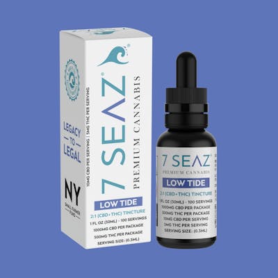 The "7 Seaz Low Tide" is a cannabis tincture formulated to provide gentle relaxation and balance with a mild psychoactive effect. It is made by 7 Seaz, a New York-based cannabis company.