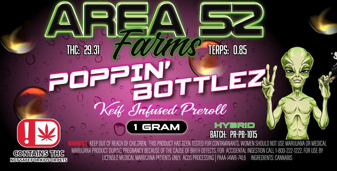 Area 52 Poppin Bottlez Kief Infused Preroll