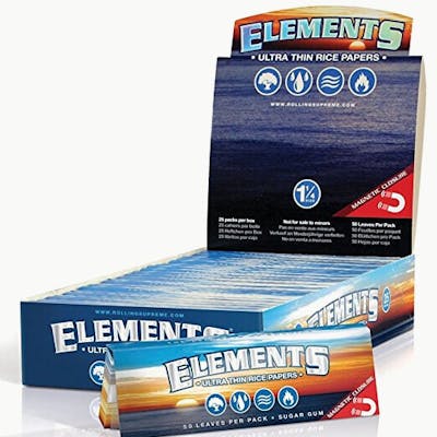 Elements Rolling Papers are ultra-thin, eco-friendly papers crafted from rice, designed to burn with almost zero ash. Produced in Alcoy, Spain, using renewable energy, they feature a natural acacia tree-sap gum that caramelizes while burning. Each paper includes a proprietary CrissCross watermark to prevent runs.