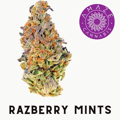 Razzberry Mints HYBRID Genetics: Razzberries x Animal Mints Razzberry Mints is a flavorful in-house creation from Amaze Genetics that combines the sweet, tangy essence of Razzberries with the creamy, minty smoothness of Animal Mints. Reminiscent of nostalgic fruit snacks, this strain offers a unique and indulgent flavor profile along with balanced, functional effects. Flavor & Aroma Profile: -Fruit, Creamy, and Tangy: -Fruity sweetness dominates, evoking the taste of classic berry-flavored snacks. -Creamy undertones add a rich, dessert-like smoothness to the profile. -A tangy twist ties the flavors together, delivering a vibrant and satisfying sensory experience. Dominant Terpenes: -Limonene: Contributes a bright citrusy note, uplifting mood and reducing stress. -Caryophyllene: Adds a spicy warmth, enhancing the creamy tanginess and supporting relaxation. -Myrcene: Brings earthy and herbal tones, promoting deep relaxation and soothing effects. Effects: -Relaxation: Provides a calming body high, perfect for unwinding without overwhelming sedation. -Mood Elevation: Encourages positivity and gentle euphoria, ideal for social or solo enjoyment. -Stress Relief: Helps ease mental tension, fostering a sense of peace and clarity. Premium Harvest Process: Each batch of Razzberry Mints undergoes Amaze’s rigorous 50-point scoring system to ensure exceptional quality: Amaze Line: Highlights the best in flavor, potency, and visual appeal. This batch has achieved Amaze status, packaged in a glass jar to preserve its premium freshness and showcase its vibrant, trichome-rich buds. Why Choose Razzberry Mints? Razzberry Mints is an ideal choice for those seeking sweet, tangy flavors paired with balanced and functional effects. Its nostalgic flavor profile and calming properties make it versatile for relaxation, creativity, or simply enjoying a flavorful session. Whether you’re managing stress, elevating your mood, or indulging in a dessert-like cannabis experience, Razzberry Mints delivers a premium experience that satisfies on every level. A must-try for hybrid lovers!