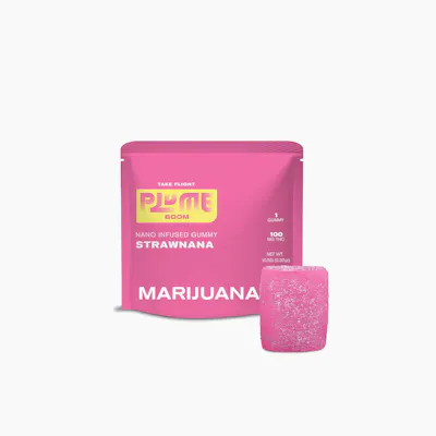 Plume Boom Strawnana 100mg Single Dose Gummy Plume BOOMS are designed for the experienced user looking for a single serving of big dosing and big taste Nano-Sonified Cannabis Oil for fast-acting results every time Made with fruit pectin with natural strawberry banana taste gluten-free, dairy-free, and vegan