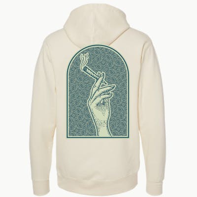 Introducing the Vintage Hoodie by Illicit, a timeless piece that combines style and comfort. Crafted with a cream base, this hoodie features the iconic Illicit logo embroidered over the left breast, adding a touch of sophistication to your look. On the back, a captivating design awaits - a green/teal dotted pattern depicting a hand holding a lit joint, capturing the essence of cannabis culture with a vintage twist. Made from high-quality materials, this hoodie offers both warmth and durability, making it perfect for any occasion. Elevate your wardrobe with the Vintage Hoodie and embrace a classic aesthetic with a modern edge.