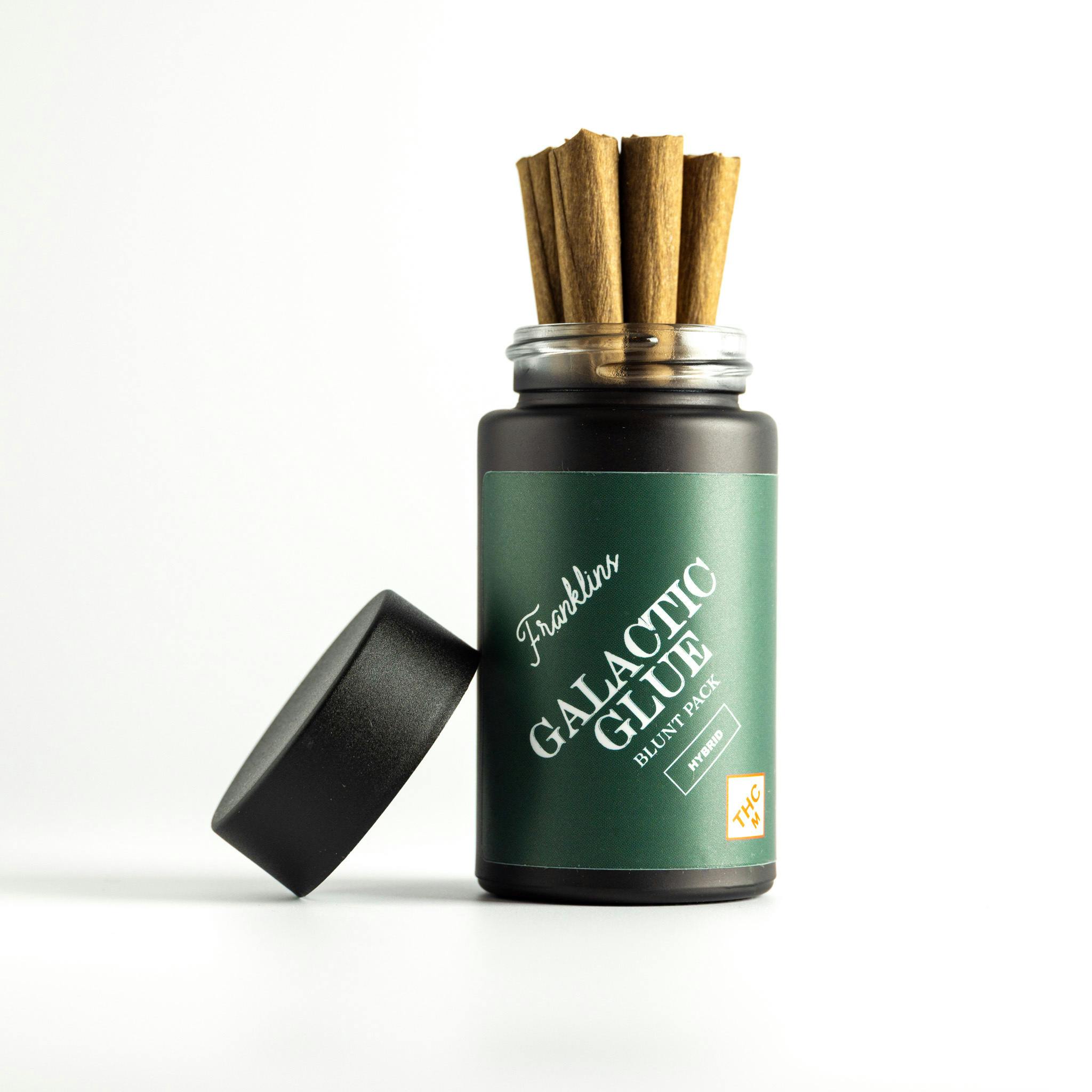 Galactic Glue is Franklin’s stickiest blend and an ultra-resinous hybrid that brings together classic “glue” genetics with Missouri’s favorite heavy hitters. Designed for a slow, smooth burn and a deep, body-melting high, this blend is all about that unmistakable stick-to-your-fingers feel. With rich flavor, dense smoke, and a perfect balance of head and body effects, Galactic Glue is a cosmic twist on a timeless classic that's built to ground you, then launch you. Franklin’s blunts are crafted using only top-shelf, whole flower: no shake, no trim, no shortcuts. Each blunt is packed to perfection for one of the slowest, smoothest burns on the market, delivering rich flavor and a clean, satisfying smoke from start to finish. By combining multiple premium strains in every blend, each blunt offers a full-spectrum experience with layered effects and complex terpene profiles. It’s a curated, elevated smoke designed to hit just right every time. Flavors Diesel Earthy Nutty