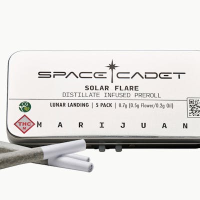 Solar Flares Prerolls - Distillate Infused - Lunar Landing (Indica Blend) 0.7g (5ct) Attention Cadets: Prepare for a Tranquil Descent. The Division of Stellar Minerals introduces their latest findings with Solar Flares Distillate Infused Prerolls - Lunar Landing (Indica). Derived from a crystalline substrate mined from the rings of Saturn, this groundbreaking innovation is for those seeking serenity among the stars. Rolled with premium cannabis flower and infused with high quality distillate, these prerolls offer a celestial escape into deep relaxation, delivering potent effects worthy of interstellar missions. Mission-Ready Effects: ? Stellar Calm: Unwind as Lunar Landing’s indica profile releases waves of tranquility, perfect for easing stress and tension after a long journey. ? Weightless Relaxation: Drift effortlessly into a state of soothing calm as your body feels anchored in a zero-gravity embrace. ? Dreamlike Recovery: Ideal for post-mission rejuvenation, the deep relaxation provided by Lunar Landing helps with pain relief and promotes restorative sleep. ? Cosmic Comfort: Experience the anti-inflammatory and stress relieving propertie Recommendation: Lunar Landing (Indica) is ideal for deep relaxation, pain relief, or winding down after a demanding mission. Whether stargazing or retreating into restful sleep, these Solar Flares will guide you towards calm.