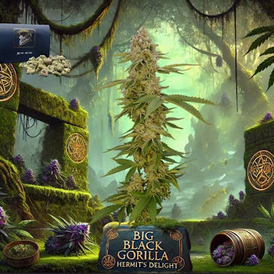 Venture into the dominion of the giants with Big Black Gorilla, a formidable strain from the hidden gardens of Hermit's Delight. This indomitable indica-dominant hybrid exudes strength and majesty, its dense, resinous buds glistening like treasures in the moonlit groves of the Ozarks. With an aroma that weaves a complex tapestry of earthy richness and a piquant hint of tropical mystery, Big Black Gorilla delivers a profound tranquilizing effect that soothes the soul and anchors the body. Its powerful presence is a sanctuary for seekers of serenity and a titan's aid for those battling the tumult of life's storms. Indulge in the might and majesty of Big Black Gorilla, and feel the fortress of calm it brings.
