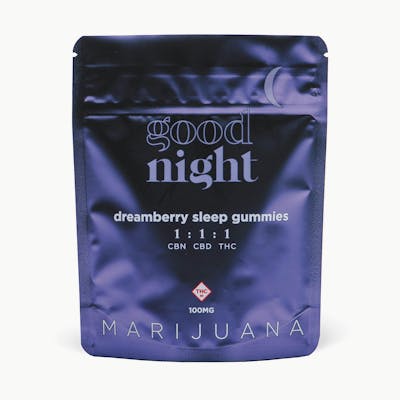 Rich, vibrant blackberry with just a hint of black currant’s tartness combine to create a supernova of flavor. -- Goodnight Dreamberry gummies are made with CBN, CBD, and THC. This perfect combination works in tandem to bring on a relaxing, sedative effect—helping you to achieve a restful sleep. -- 40 gummies per package -- 2.5mg CBN / 2.5mg CBD / 2.5mg THC per gummy